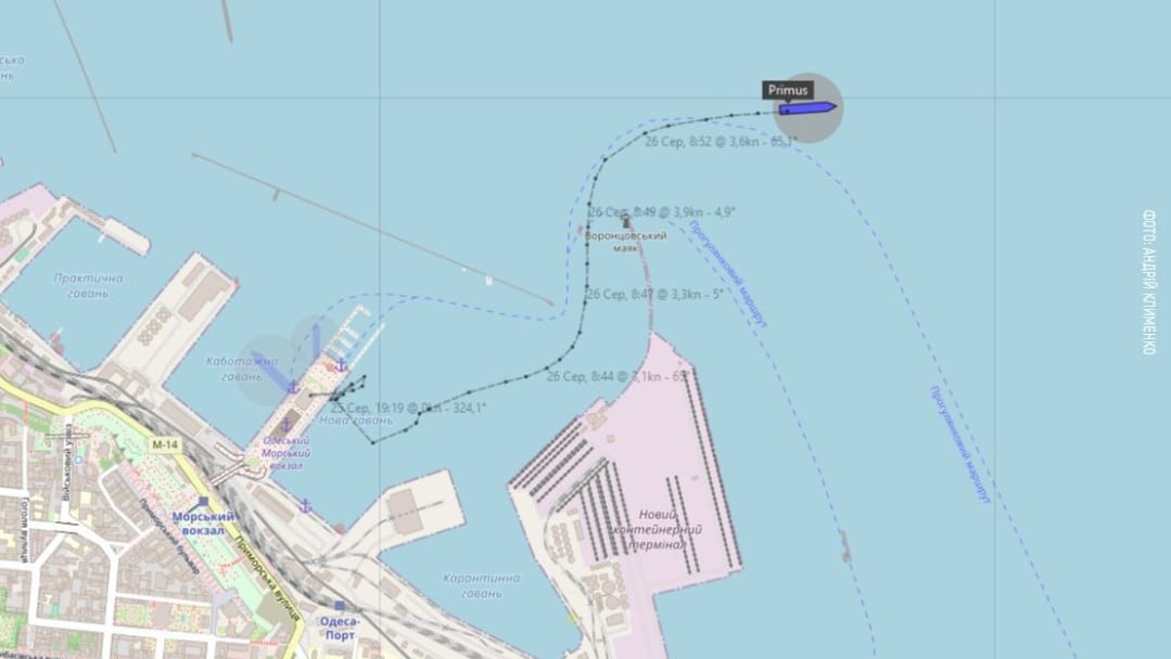 Сьогодні, 26 серпня, після тривалої перерви з порту Одеси вийшло судно, яке перебувало там з 20 лютого 2022 року. Балкер PRIMUS вирушив до болгарської Варни.