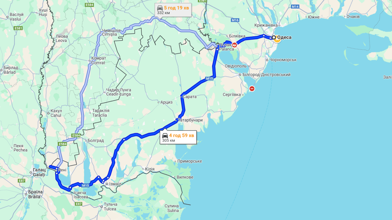 Сьогодні, щоб дістатися до Румунії, теж потрібно постояти у чергах. Наразі на міжнародній трасі М-18 на півдні Одеської області спостерігаються затори біля Сарати та у межах села Холмське. Подорож до дунайського кордону триватиме сьогодні майже п'ять годин. Також є альтернативний маршрут, який майже повністю пролягає через територію Молдови.