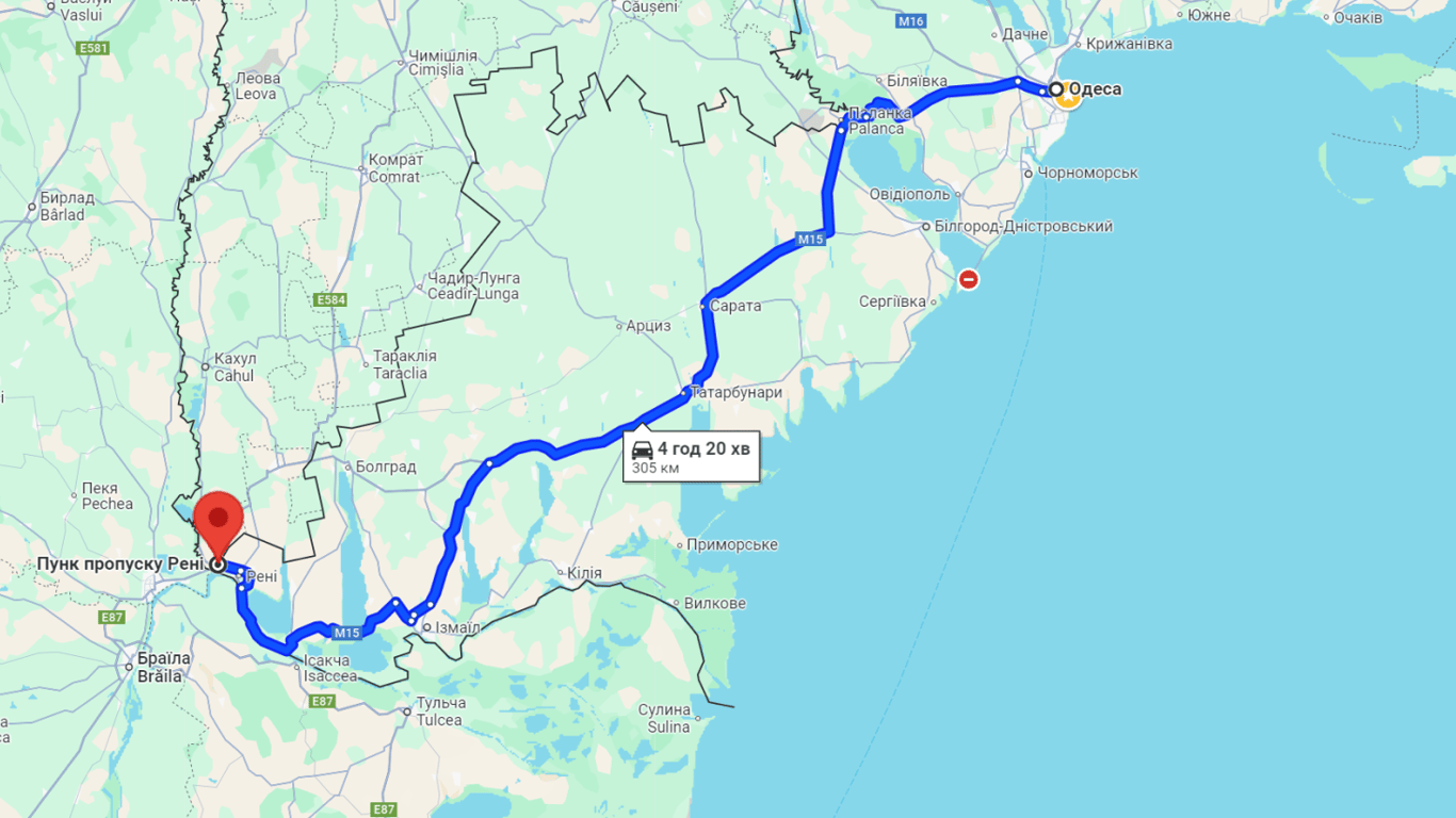 На пункті пропуску "Рені-Джюрджюлешть" ситуація відрізняється: черги на перетин кордону відсутні, однак на в’їзді до України утворився затор. Ця ділянка позначена червоним кольором на картах.